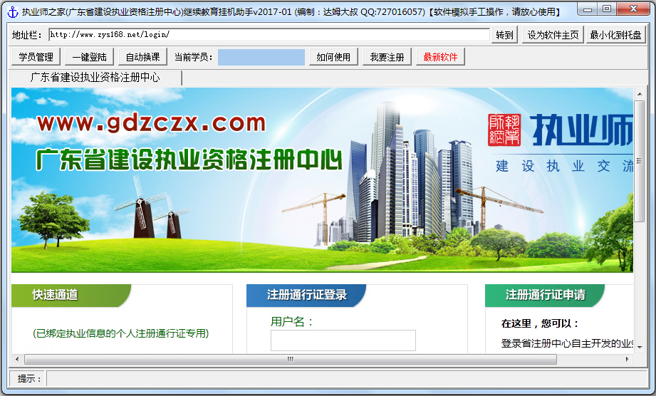 执业师之家挂机助手,本挂机软件适用于在执业师之家(广东省建设执业资格注册中心)远程培训学习。