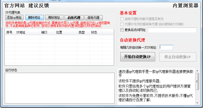 速改通ip代理更换助手可以导入ip代理地址,然后使用手动启用代理或者使用自动更换启用代理。