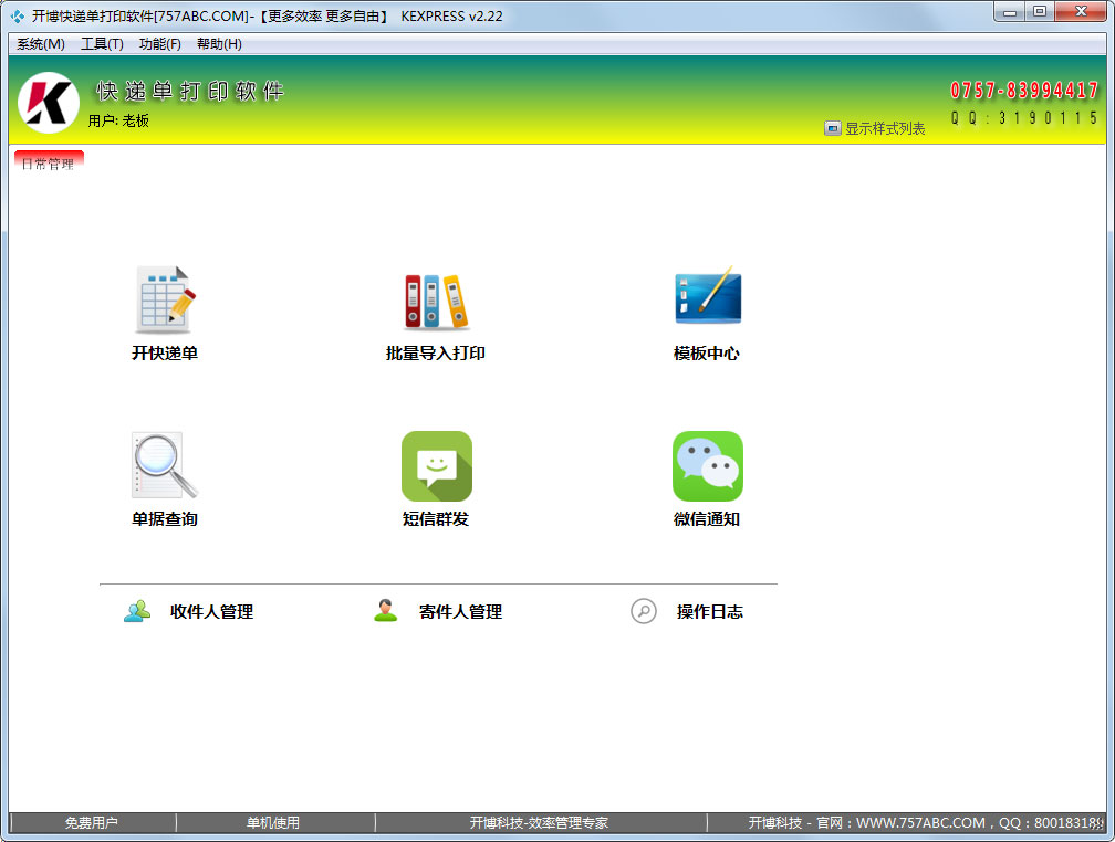 相比较其他同类软件,开博快递单打印软件不仅仅能胜任打印快递单,还可以方便扩展到如下的套打场景:银行票据、财务票据、财政税务、协议合同、销售发货及仓存进出库单据、售前售后服务单据、工作联系单据等等;同时,KEXPRESS采用先进的多层架构和高效数据库存储技术,支持联网多用户同时使用,也可直接放U盘使用。