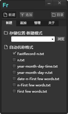 FastFRecord 界面看起来比较复杂,虽然功能非常简洁:将复制文本快速生成为 TXT 文件,可选择新建或者追加到某文件。