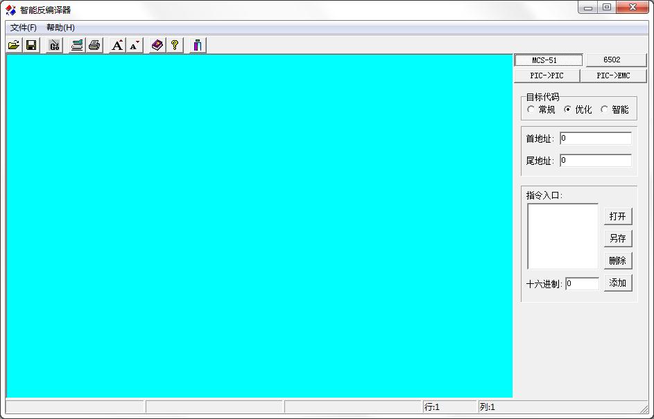智能反编译器是一款专业实用的ARM智能反编译器,可以自动区分代码段和数据段,让反编译出的源程序不许做任何修改就可以进行再编译,可以更快捷的分析程序和修改再编译,支持MCS-51系列、6502、PIC、NTK、HOLTEK、PIC到EMC的转换。