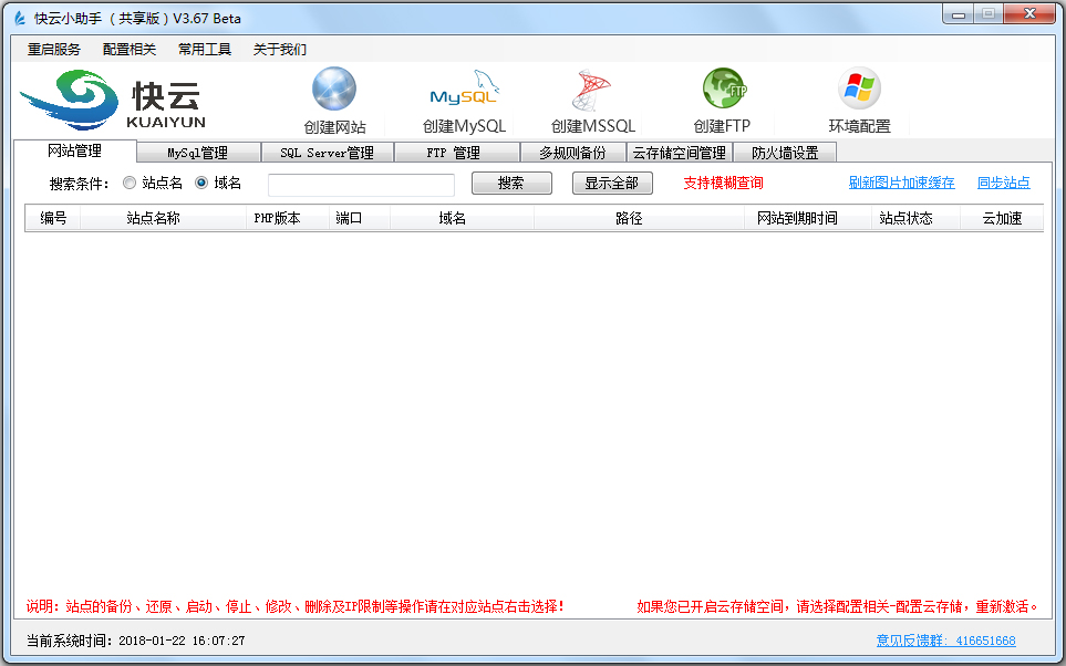 快云小助手是款辅助管理系统、网站和数据库的软件。快云小助手可以快速建立IIS站点,一键创建站点、数据库、管理系统用户、FTP;创建的站点默认启动独立用户,站点之间彼此隔离运行,解决FSO安全风险;一键自动配置环境,可方便快速安装PHP、MySQL、Zend、PHP-MyAdmin、FTP等各种组件。