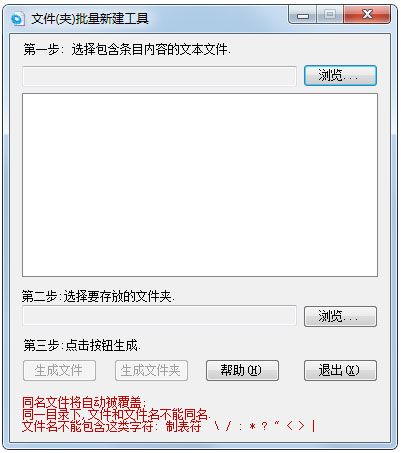 文件(夹)批量新建工具程序使用很简单,相比类似的软件,既可以批量生成文件,也可以批量生成文件夹。当然,也有很多人会使用批处理或VBA脚本来实现,但总归没有这个小工具简单方便。
