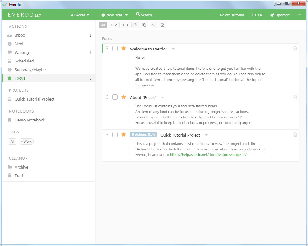 Everdo是一款高效好用的待办事项管理软件,通过Everdo pro能够对自己的项目、待办事项和任务进行有效的管理,软件集合了多种好用的小工具,用户可以利用软件对自己的工作做一个分类和总结,有需要的可以下载使用。