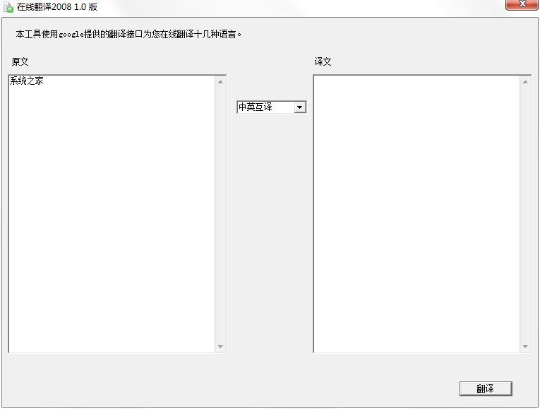 在线翻译专家是一款迅速。便捷。高效。准确的迷你即时翻译工具,内核采用Google在线翻译引擎,本软件的使用需要您的登录到Internet,且保证网络连接是正常的。