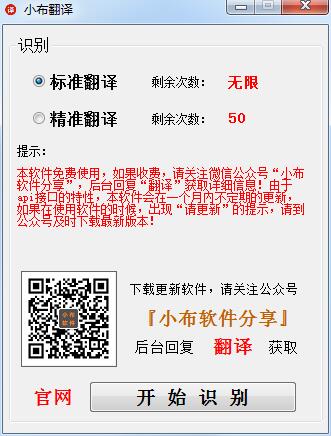 2. 标准翻译:普通识别翻译,不限制识别次数。