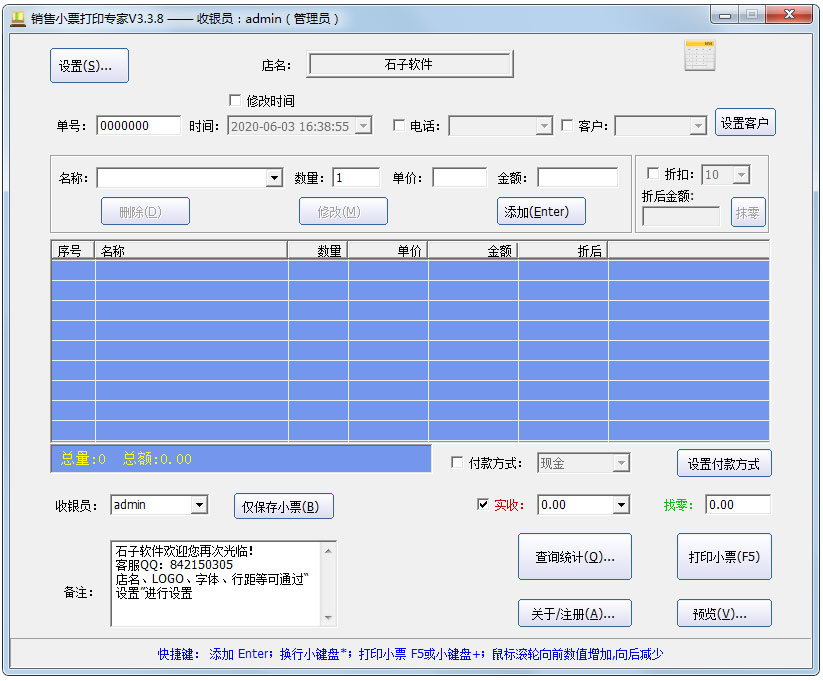 销售小票打印专家是一款支持POS58热敏打印机,实现打印销售小票的软件,软件简洁且实用!