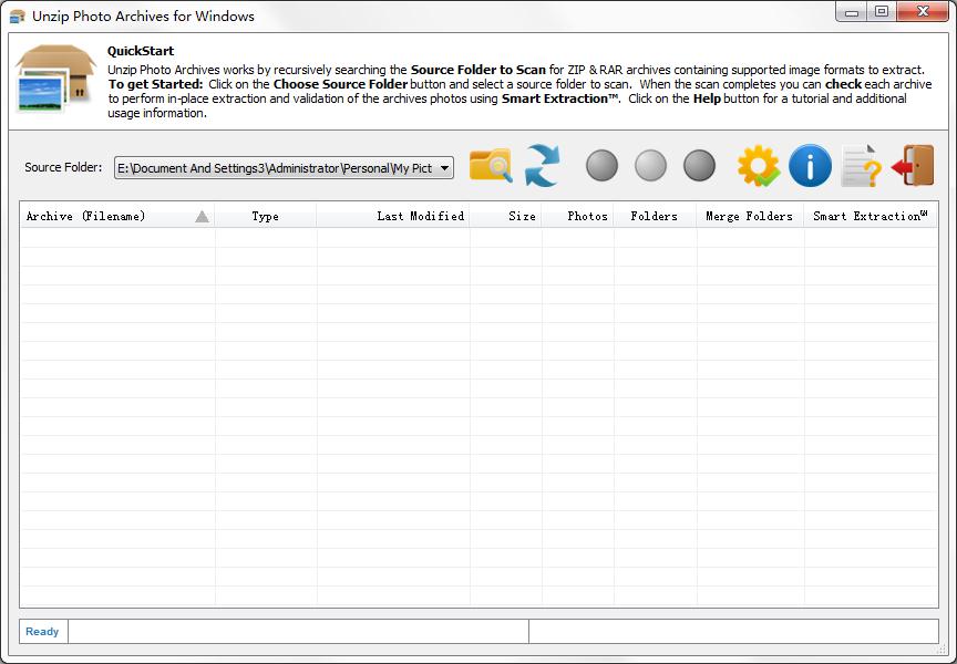 Unzip Photo Archives是一款压缩包找提取软件,通过使用该软件,可以方便用户ZIP和RAR压缩文件中批量提取出压缩包的照片,而且自动过滤不必要的图片文件,自动删除提取后的文件,支持照片验证等,使用非常的方便,操作简单,非常好用,需要的快来下载吧!