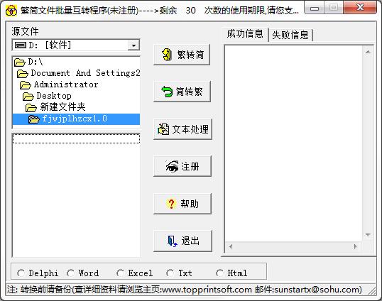 繁简文件批量互转程序是一款非常实用的简繁体互转助手,支持繁转简、简转繁和文件处理三大功能,能够批量转换繁简体文件,官方版支持Delphi、word、excel、txt、html格式,需要说明的是建议转换前备份文件。