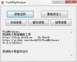 FuckMythware是一款网友个人打造的极域电子教室辅助工具,能够获取密码、替换主讲人、冻结窗口、结束电子教室软件,可以对教学的过程进行控制,获得更好的教育环境和方式,方便使用,对于那些上电脑课喜欢摸鱼的同学,这个软件可以试一试。