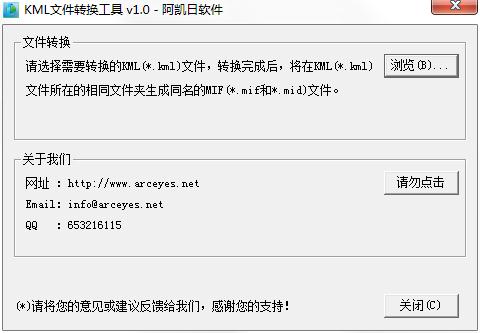 水经注文件转换工具又名kml文件转换工具,是阿凯日软件工作室推出的一款将kml(*.kml)文件转换为mif(*.mif和*.mid)文件的实用工具,软件体积小巧,绿色无毒,打开就可以使用,可以迅速对需要转换的kml文件进行转换生成需要的文件。