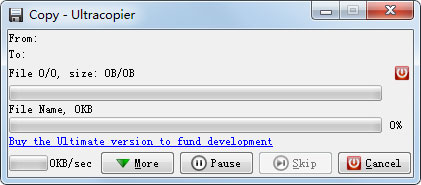 UltraCopier旨在实现以最快的速度在Windows 环境下移动/复制文件,它以智能缓冲技术挖掘在文件传输时的最优速度,同时为了保障文件在移动、复制时的安全性,UltraCopier内置了错误恢复功能,即使在文件传输过程中遇到意外错误,UltraCopier也将重复尝试,即使遇到更糟的情况,尝试不成功,UltraCopier也只是跳过该文件,并不会终止整个移动、复制过程 。