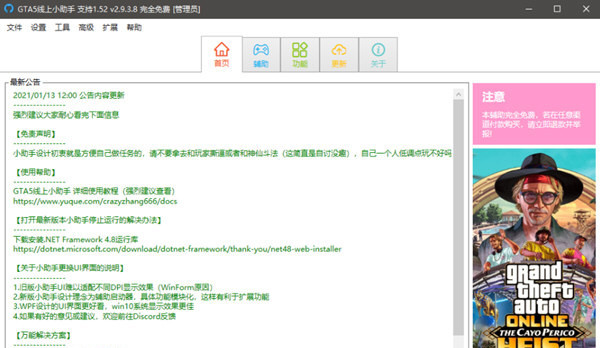 GTA5线上小助手外置辅助是一款针对同名游戏所推出的修改工具,可以帮助玩家在进行GTA5联机的时候轻松修改,不用担心R星账号问题。软件的体积小巧,安全稳定,功能齐全,基本满足玩家的需求。