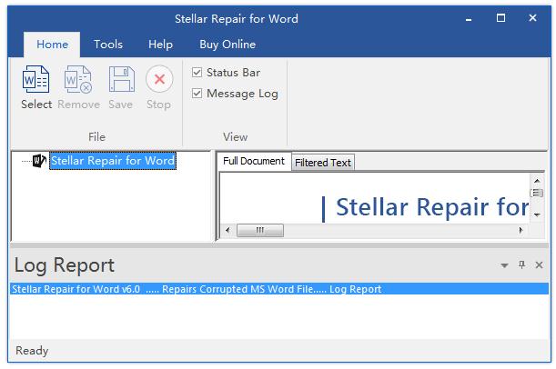 扫描过程完成后,该软件将提供Word文件文档中可恢复数据的免费预览。此功能有助于确定软件在修复和恢复Word文件数据中的有效性。您可以看到三种不同格式的预览,即“完整文档”,“过滤的文本”和“原始文本”。