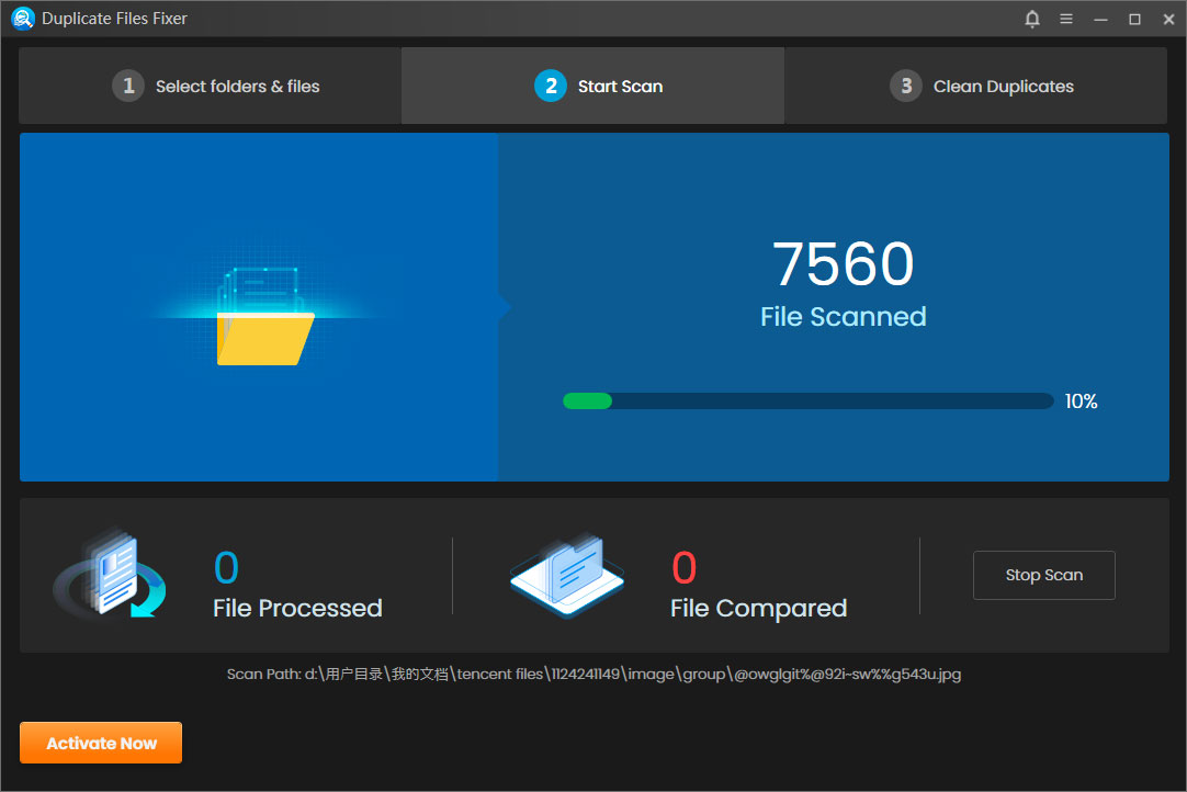 扫描重复文件变得更加容易!无论是十个还是几千个文件,重复文件修复程序都可以在几秒钟内扫描所有文件!您可以决定该工具应扫描重复项的文件或文件夹。只需点击一下即可节省宝贵的时间和精力!