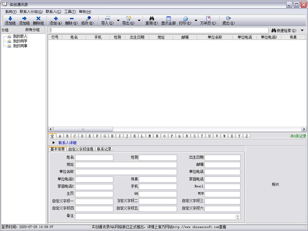 实创通讯录是一款优秀的个人通讯录管理软件,功能实用,界面美观,操作方便,如果您觉得别的通讯录软件过于复杂或不能满足您的个性要求,不访试试本通讯录,或许能带给您意想不到的收获,可无限级设置通讯录分组,可随意设置通讯录列表项目,支持Wab文件或Excel文件的导入及导出,支持万年历及手机归属地查询。