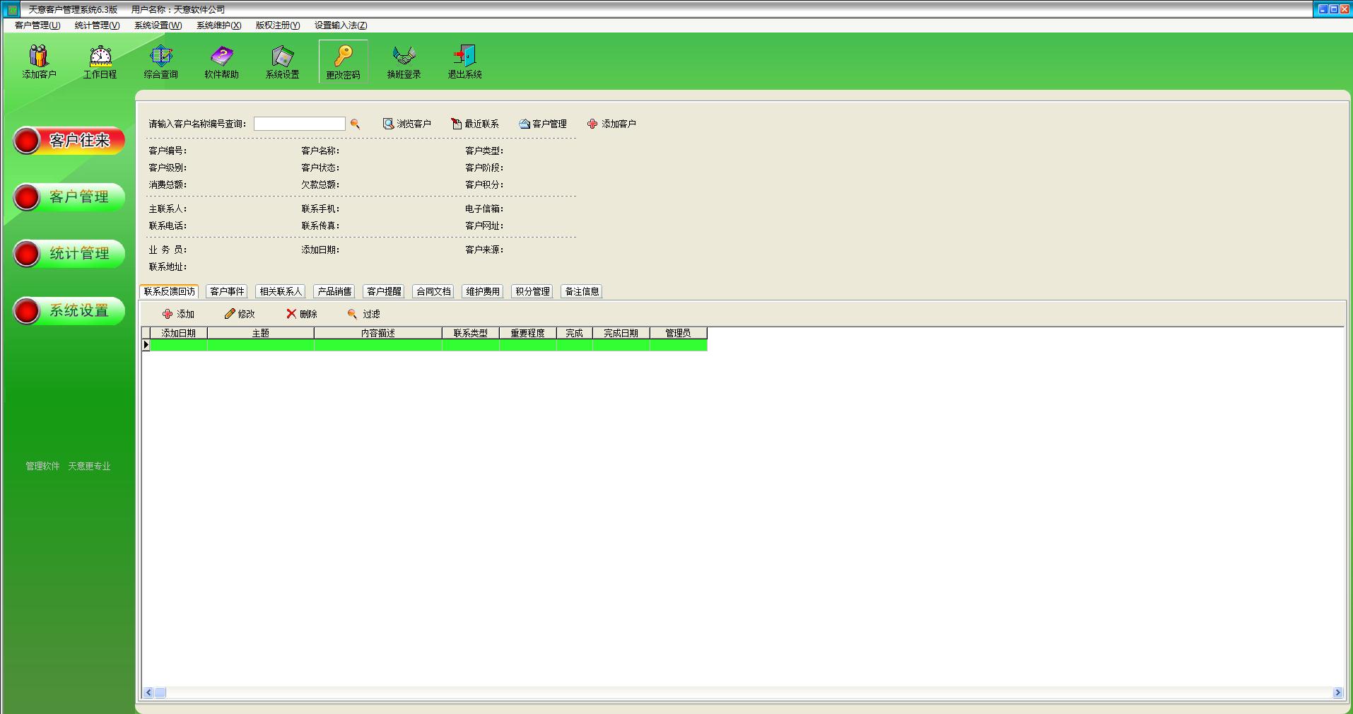 软件界面设计简洁、美观,其人性化的软件流程,使普通用户不需培训也能很快掌握软件操作使用方法,上手极易。天意客户关系管理系统广泛适用于各个行业进行客户管理、销售管理,是您企业进行客户档案管理、客户资料管理、客户服务管理、客户信息管理的强大工具。