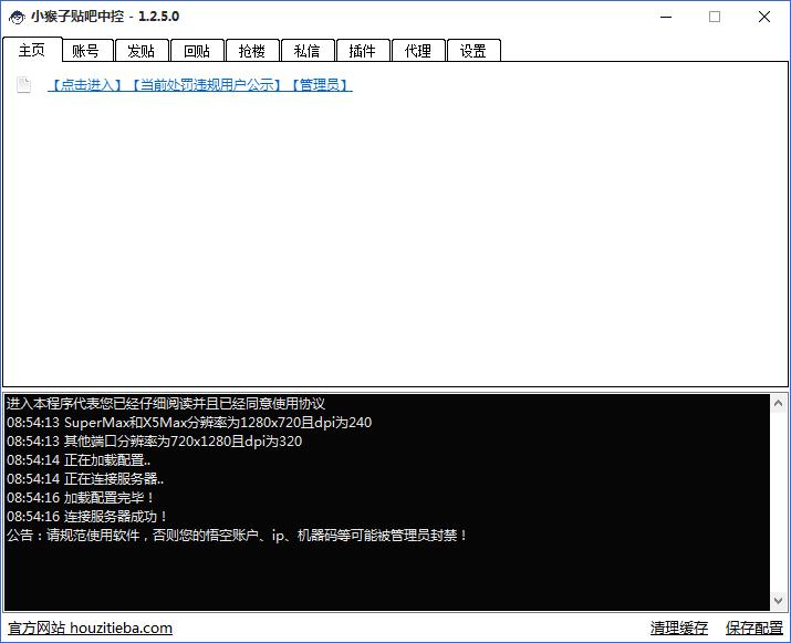 小猴子贴吧中控软件是一款贴吧管理工具,该软件可以帮助用户对贴吧账号及贴吧进行管理,包括账号管理,发贴管理,抢楼管理,回贴管理,私信管理,插件管理等,方便实用,模拟人工代替繁琐的人工操作、高效率多线程模拟器控制。