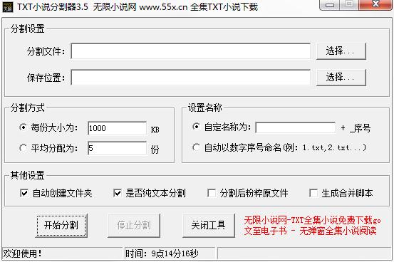 无限小说TXT分割器是一款非常强力的txt文件分割器,该软件主要用来分割网络小说这种大体积的txt文件,按大小分割,按数量分割,能够更好的帮助用户放在手机等设备阅读,有需要的朋友不要错过了,欢迎下载使用!