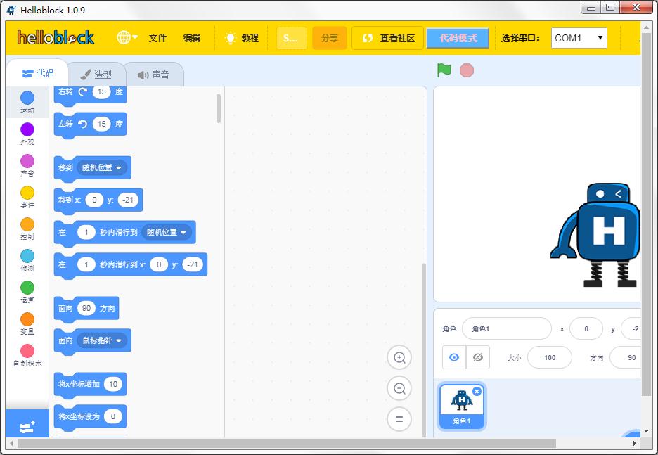 3. 进入Helloblock图形化编程界面。