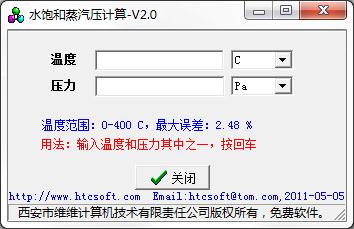 软件功能强大,使用简单方便,输入温度和压力其中的任意一个,按下回车,另一个就自动计算出来。在广阔的温度范围:0-400 C内,最大误差:2.48 %。