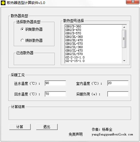 散热器选型计算软件是一款绿色实用的小工具,能方便地计算出散热片数量和每个散热片的平均散热功率,方便设计人员设计供暖系统。