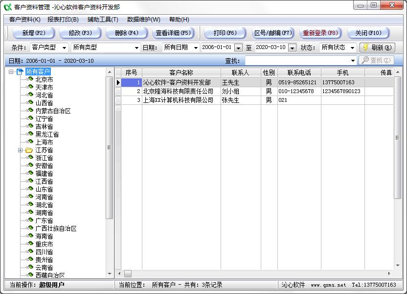 沁心客户资料管理软件是一款可以帮助你管理客户资料的软件,该软件界面简洁、功能实用,帮助你收集、整理、归类、统计和打印客户信息,可以将全国各地区门类繁多的客户信息,有序的进行归类保存,并可通过客户信封、标签打印为您实现和客户的联系与沟通,轻松帮助你完成日常的一系列工作内容,提升你的工作效率和业绩。