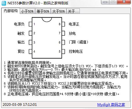 NE555参数计算器是款针对ne555专门打造的参数计算工具,可以根据手中不同的设备参数,计算电路的频率和占空比,从而判断出电路是否合乎规范,让工作人员能够快速的掌握ne555的内部的设定,了解周边电路的设计,计算出频率和占空比。