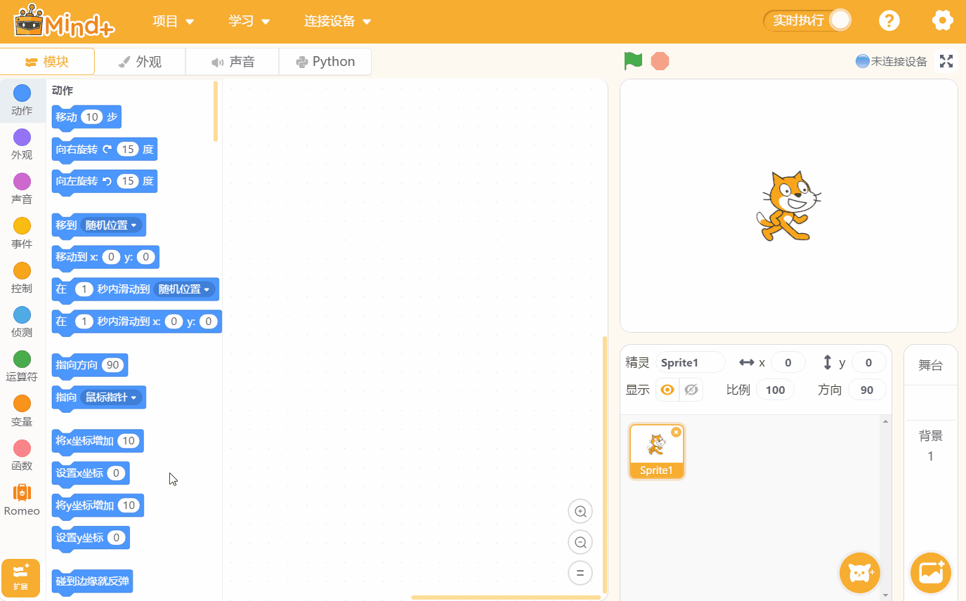 除了预置的图形化编程,Mind+也开放了python编程,并可以用python编程对Arduino、micro:bit等开源硬件进行实时控制,同时也支持c/c++等高级编程语言进行控制。