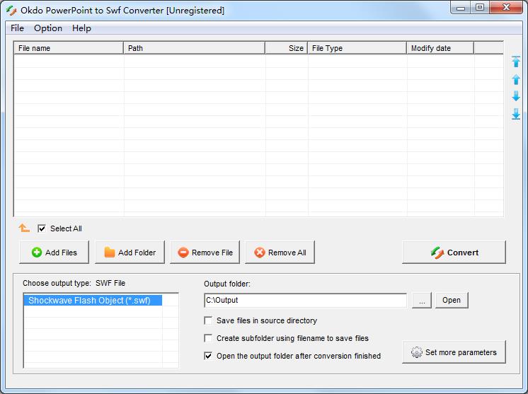 Okdo PowerPoint to Swf Converter是一款PPT转换工具,能够将各个版本的PowerPoint文件比如ppt/pptx/pptm转换成Flash的swf文件,速度超快,支持批量转换。