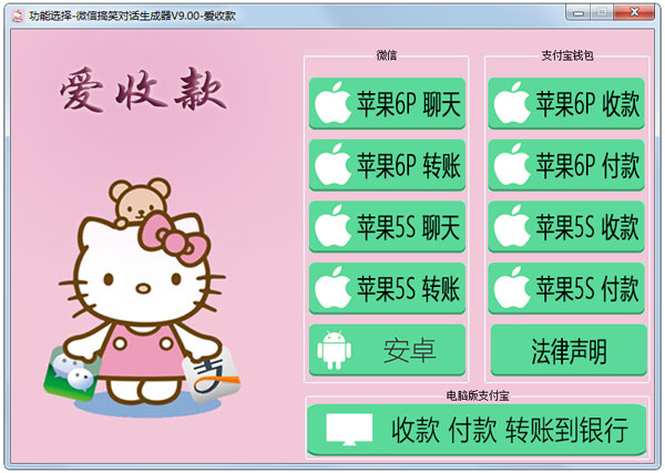 微信搞笑对话生成器是全网唯一一家一个软件包括微信对话生成器,支付宝转账截图生成器,微信收米转账截图生成器!
