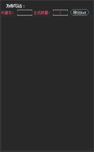 1.输入关键字和生成数量,在关键字编辑框,或者数量编辑框按回车键开始写诗。