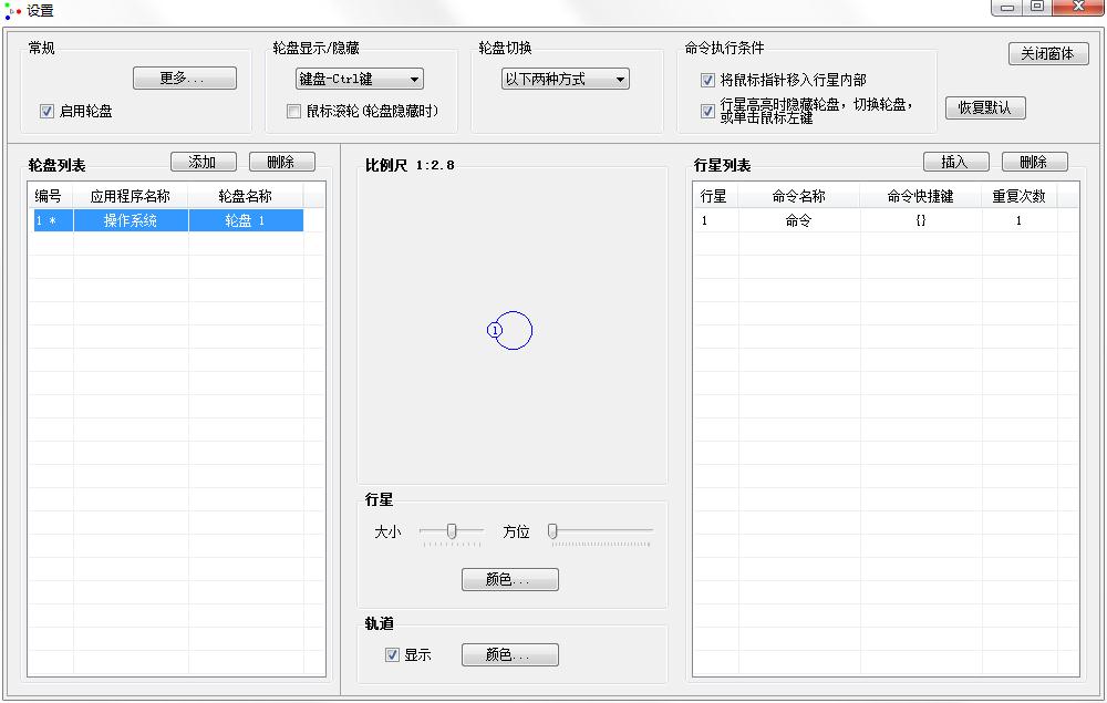 5、轮盘显示/隐藏分组框、轮盘切换分组框、命令执行条件分组框。
