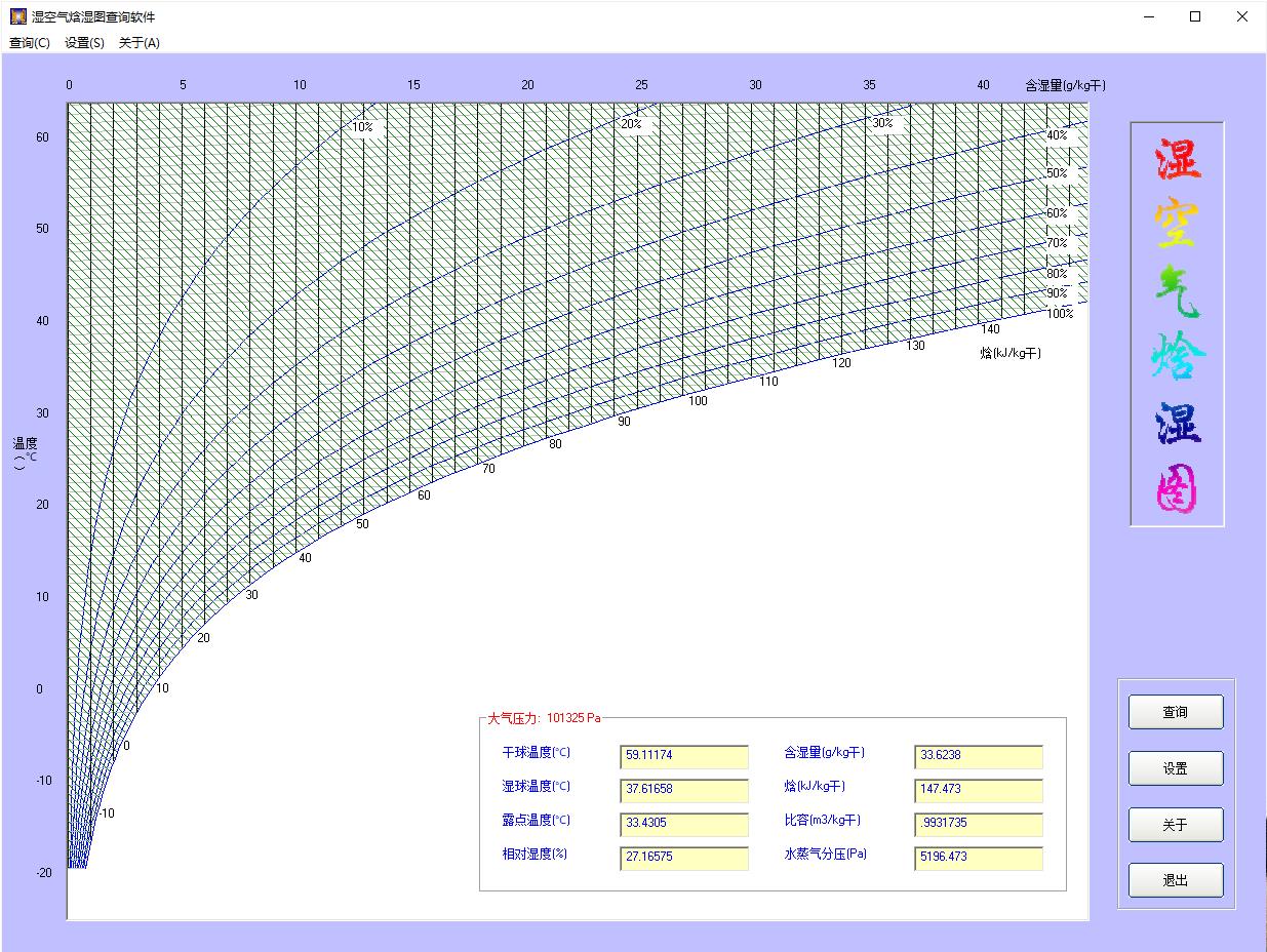 3、湿空气焓湿图查询软件官方版支持干球温度,湿球温度,含湿量等数据。