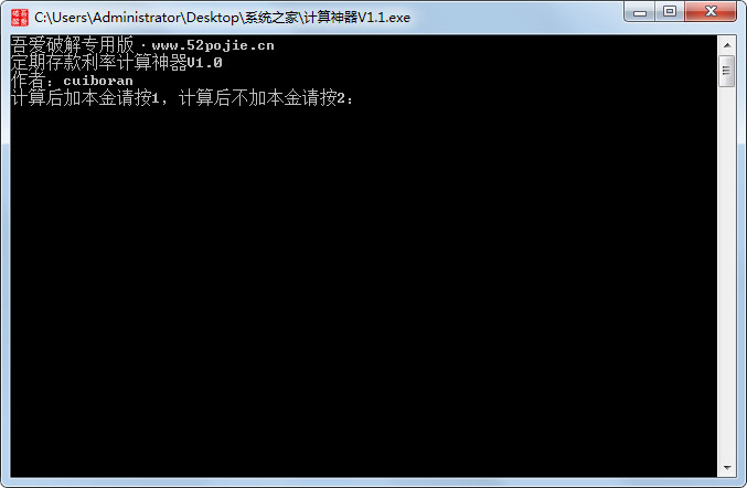定期存款利率计算神器是一款用C++实现,命令行样式的软件,可以计算定期存款的利率,加本金或不加本金!