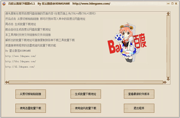 百度云批量下载器是一款方便易用的百度网盘下载工具。该软件可以批量解析百度云网盘的直接下载地址,支持文件链接及文件夹链接,支持迅雷和QQ旋风批量下载。
