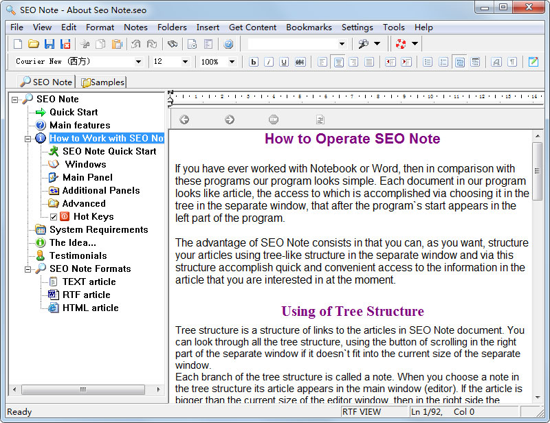 SEO Note官方版记事本它的体积非常小巧,但是SEO Note却足以应付你日常生活中的各种需要,使用者可以依照需求建立不同的分类项目,并且将各种资料依照不同种类进行记录,而这些内容都将以树状结构的方式存在,让你日后便于查询及管理。