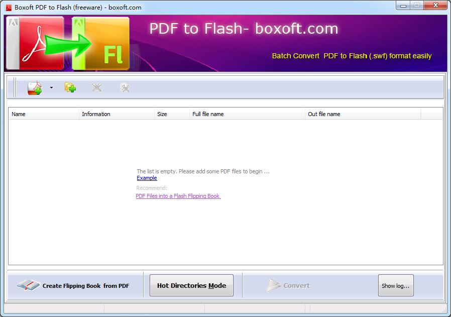 Boxoft PDF to Flash是一款功能强大的PDF转FLASH工具,软件能够帮助您对pdf文件进行批量转换, 同时还集成了命令行模式,你可以通过任何编程使用。是一款功能非常强大的PDF转FLASH工具。