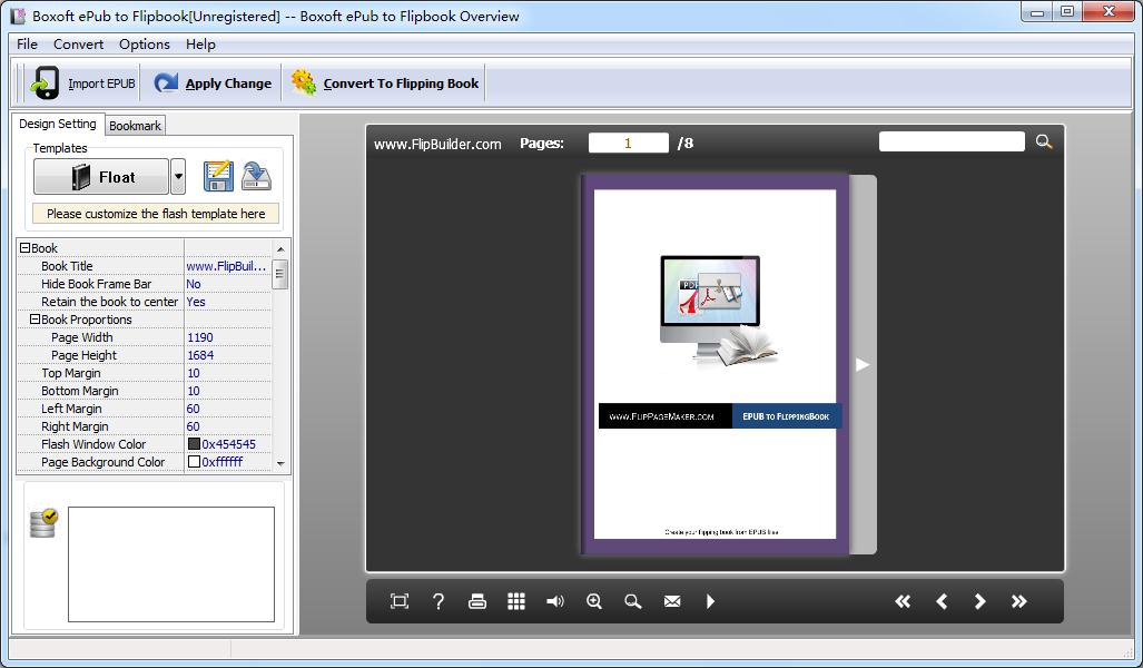 Boxoft ePub to Flipbook是一款专业强大的电子书制作软件,用于将epub文件转换为具有动态翻页效果的翻页书。它是一个很好的助手,您可以转换epub文件,从epub文件创建生动的翻页书。它给我们带来了一种新的、时尚的方法来读取epub文件。