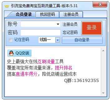 引流宝免费淘宝互刷流量软件,是一款基于(Peer to Peer简称P2P模式)计算机网络对等互刷模式的流量互刷软件,即相互浏览对方的商品,除了自己发布的商品外。软件采用帐号登陆,发布扣点形式,认证会员的形式互刷,保证每个人的安全性,本软件完全模拟人工关键词搜索,模拟鼠标点击商品,滚动浏览,达到真实可见的优质浏流量。