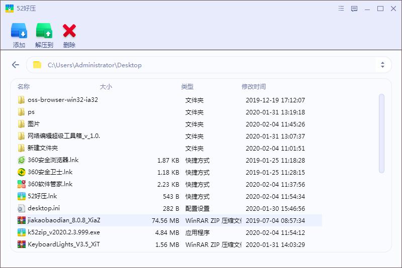 52好压是一款针对文件进行压缩和解压的产品,支持市面上绝大部分的压缩文件的解压,轻巧便捷,界面非常简单,使用起来非常方便!