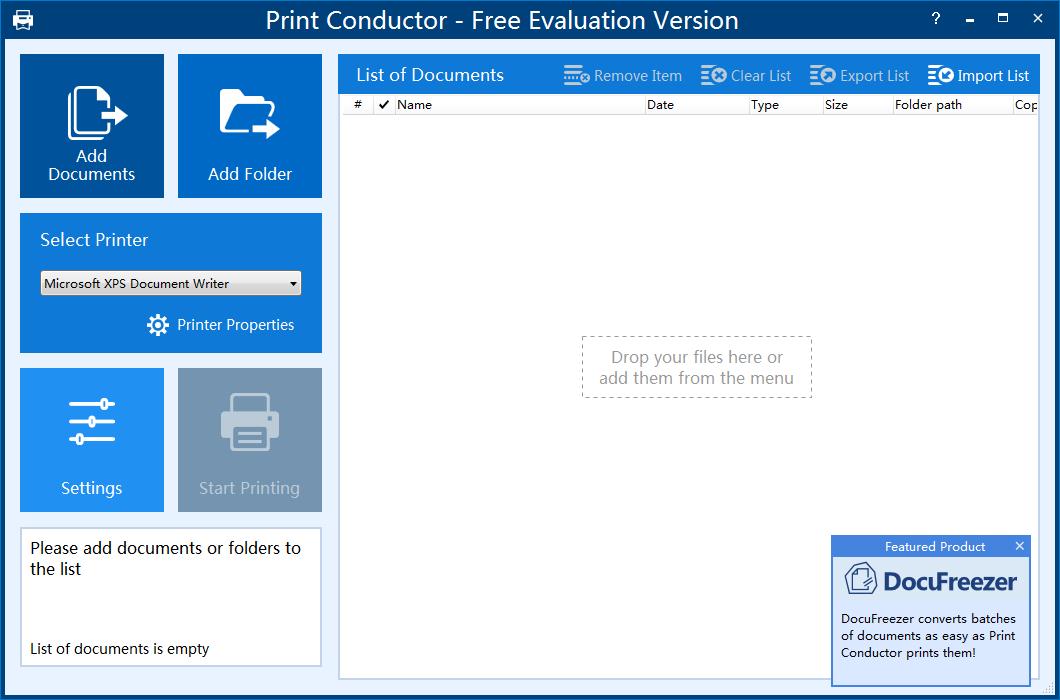 Print Conductor是一款能够在不打开文档的情况下,批量打印多份文档的工具,支持 PDF、DOC, WRI, WPS, RTF, TXT、XLS、PPT、PPS、 POT、Visio VSD、DWG和SNP格式。