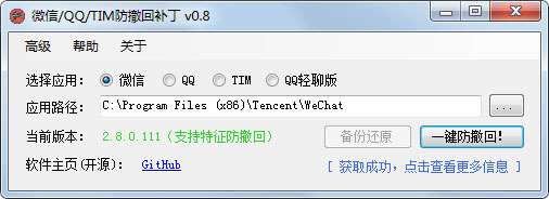 PC微信防撤回软件是一款小巧的辅助工具,该软件操作简单,主要可以帮助用户看到对方撤回的微信内容,而且使用起来也显得格外方便,喜欢的话可以亲测一下。