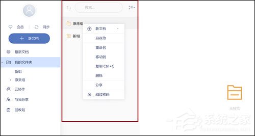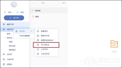 5、 点击我的文件夹或者其他的自己建的文件夹,右键点击选择新文档然后导入word就可以把现有的笔记导到有道云笔记里面了;
