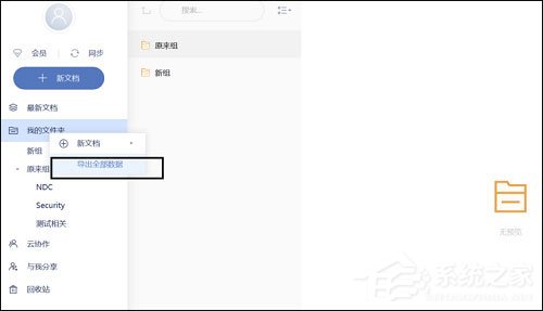 6、虽然有道云笔记不需要备份,可以在任何设备上登录账号获取文件,有时候想特意保存或者转发的可以用导出功能,右键点击你的文件夹选择另存为或者我的文件夹右键选择导出全部数据。