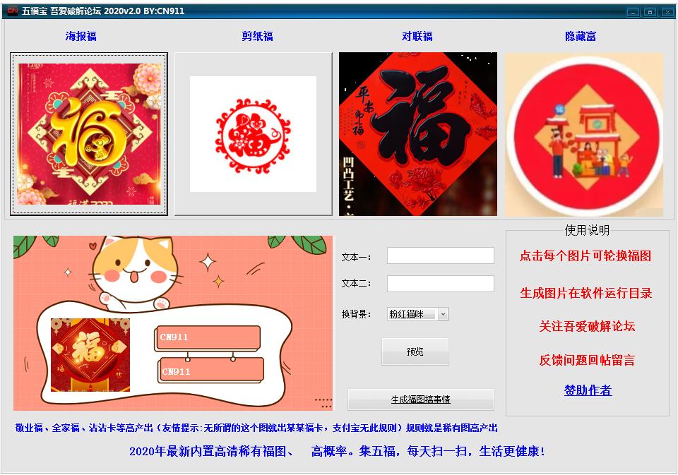制作福图分享朋友圈、隐藏富、海报福、剪纸福、对联福、稀有福图带你飞。