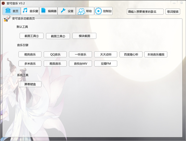 安可音乐是一款音乐盒子,可以支持多个因音乐电台的播放,专门为YY音乐台(电台)、K厅、聊吧等类型的频道打造,实现一个软件播放多个音乐软件电台。