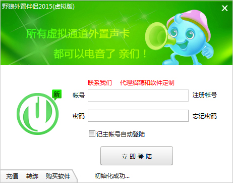 野狼外置伴侣软件自带万能驱动一键式安装可以支持任何的外置声卡!如(艾肯、森频、客所思-PK3、传奇版、究极版、玛雅外置、ISK-USK400、魅声T600、得胜MX620、全胜KX-2A、K-MIC金麦克、创新SB1095、1090、易听UKL-1外置 、舒音歌霸等等),内置大量VTS插件和接近百种效果,其中包括(电音、喊麦、唱歌、聊天、机器音效果、环绕、爆音、回荡等),由于操作界面简单,使用方便,深受广大聊友的青睐和追捧 不管你有没有调音的基础,也可以自由玩转VST机架效果。