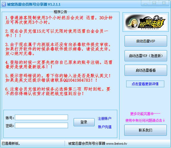被窝迅雷会员账号分享器 V1.2.1.1 绿色版