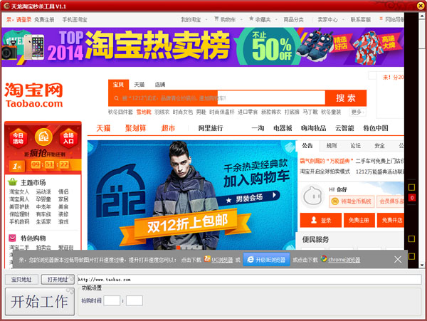 天龙淘宝秒杀工具一款简单的淘宝秒杀器,没什么额外的功能,就是秒杀。